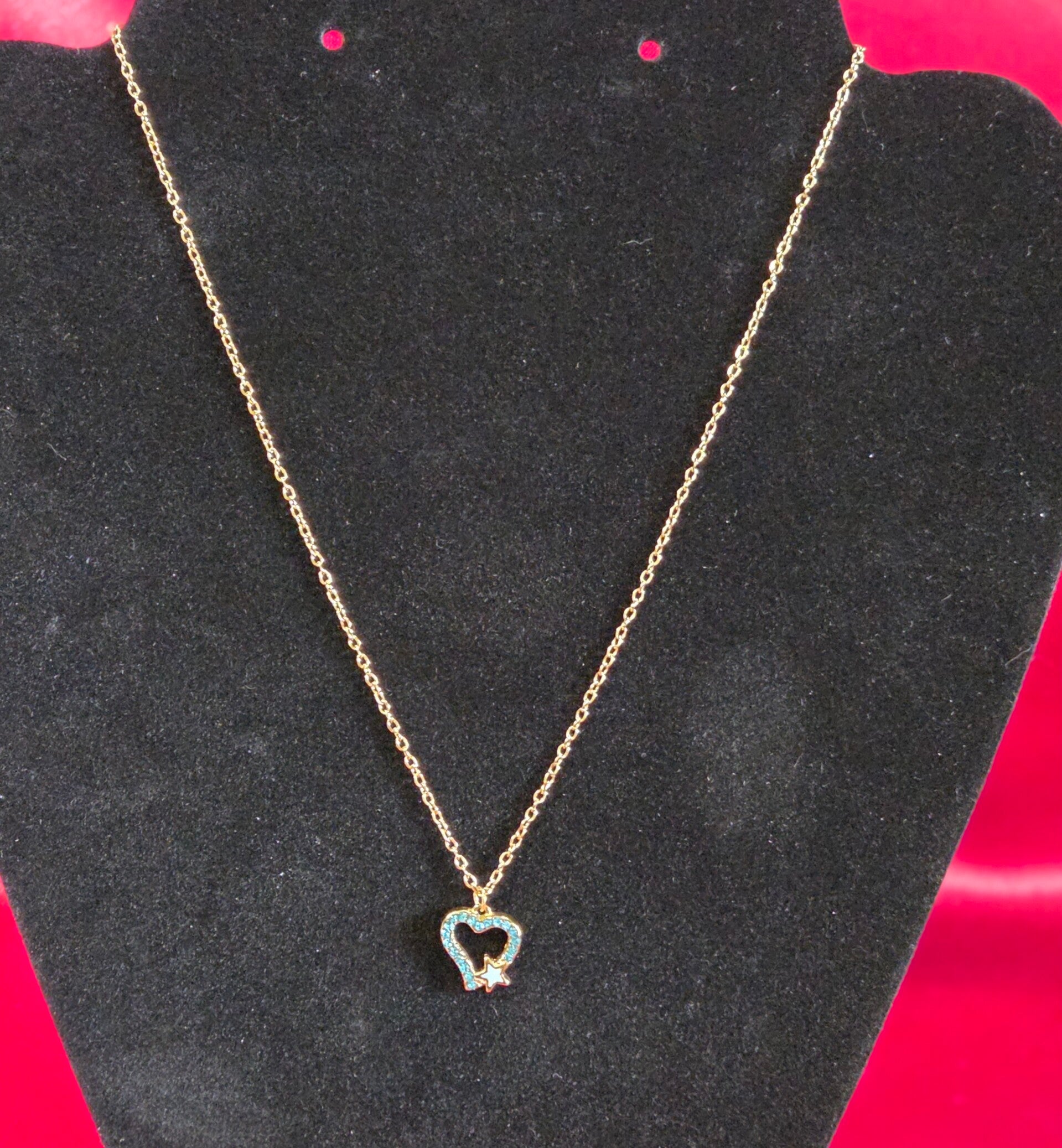 Eine sehr schöne und elegante Kette. Mit einem blauen Herz und Stern auf dem Herz sind blaue kleine funkelde Steine. Perfekt für jeden Anlass.